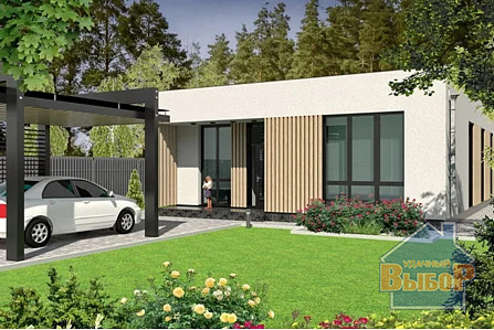 Фасад: облицован, декоративная штукатурка "камешковая" + планкен лиственница;