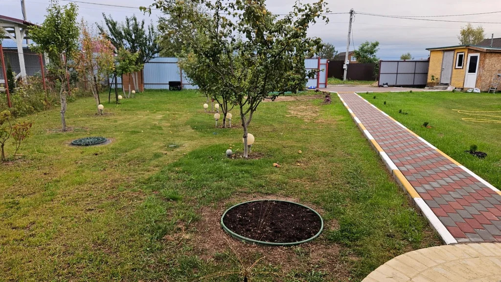 Участок с ландшафтным дизайном, вечерней подсветкой, дренажом и ливнёвкой.